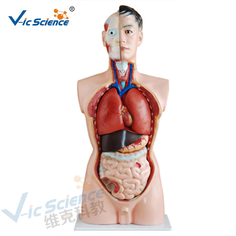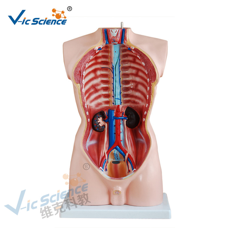 Dies ist ein normaler männlicher Torso. Handbemalt und sorgfältig zusammengebaut, um die menschliche Anatomie zu simulieren. Teilt sich in 19 Teile: Rumpf, Kopf (2 Teile), Gehirn, Lunge (4 Teile), Herz, Luftröhre, Speiseröhre und absteigende Aorta, Zwerchfell, Magen, Zwölffingerdarm mit Bauchspeicheldrüse und Milz, Darm, Niere, Leber und Blase (2 Teile) ). Auf Kunststoffsockel montiert.